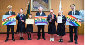 3月17日、チアリーディングチーム「TINKS」のメンバーで、上市町出身の4人が今年度1年間の入賞報告に来てくださいました。